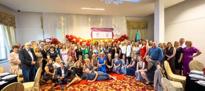 Sala w Hotelu Góreckim zamieniła się w prawdziwe „edukacyjne kasyno”. Eleganckie stroje, złoto dodatków, migoczące kryształy – a w tle wspomnienia i żarty podkradane klasowym legendom. Nad całością czuwała pani prezes oddziału, Wioletta Marcinek.
